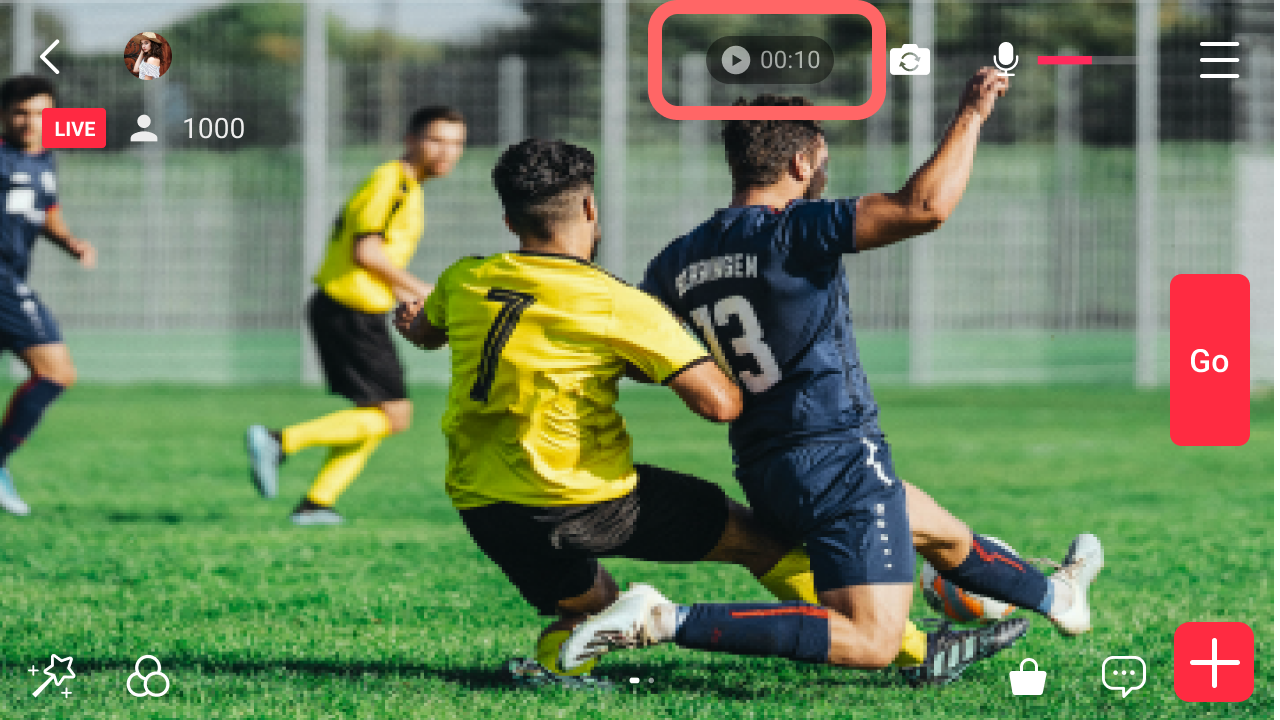 If the feature is turned OFF, you can manually play the replay video from the source switcher. From the source switcher at the bottom, select the screen you want to broadcast—either the live stream or the replay.